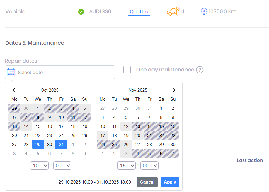 Motorcycles are more vulnerable to minor scrapes, dents, and part-specific damage than cars. Rentsyst includes a visual damage map tailored to motorcycles, so you can record issues with exact locations on the bike (e.g. tank, fairing, handlebars, rims). This improves transparency with clients and simplifies claims or maintenance follow-up.