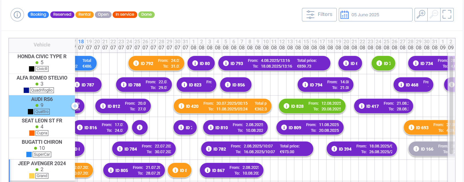 A powerful calendar tool is crucial for managing a high-demand fleet. Rentsyst’s drag-and-drop calendar shows vehicle availability, reservations, maintenance windows, and overdue returns — all in one dashboard.