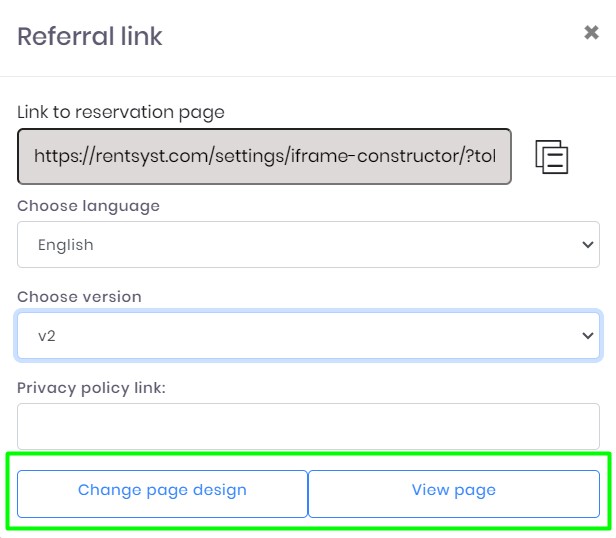 3. Use buttons below “Change page design” to dive inside the Booking page Editor and “View page” – to see how your future Booking page will look like.
