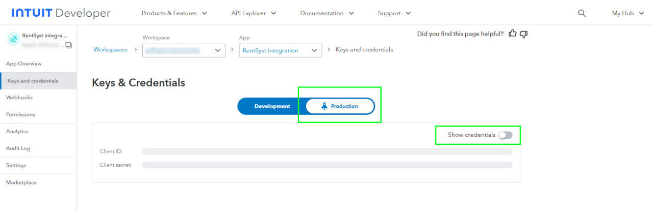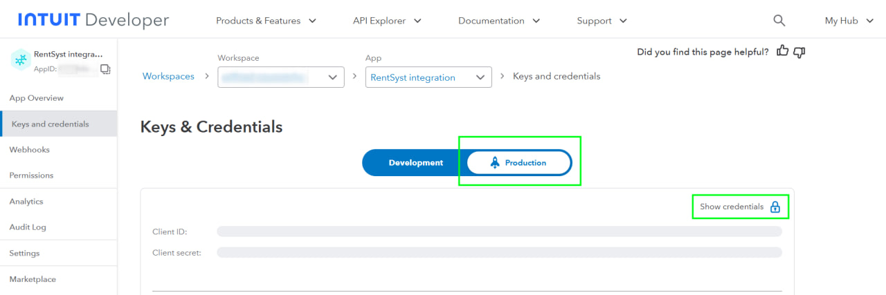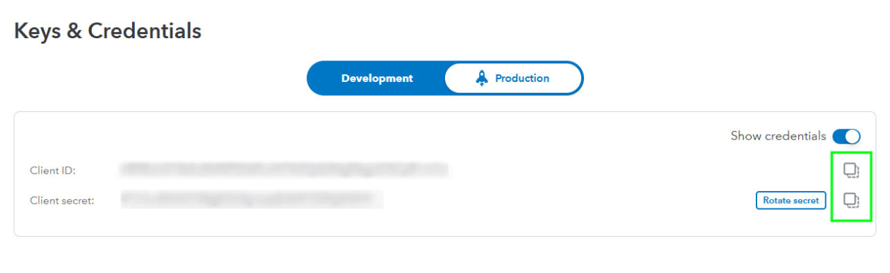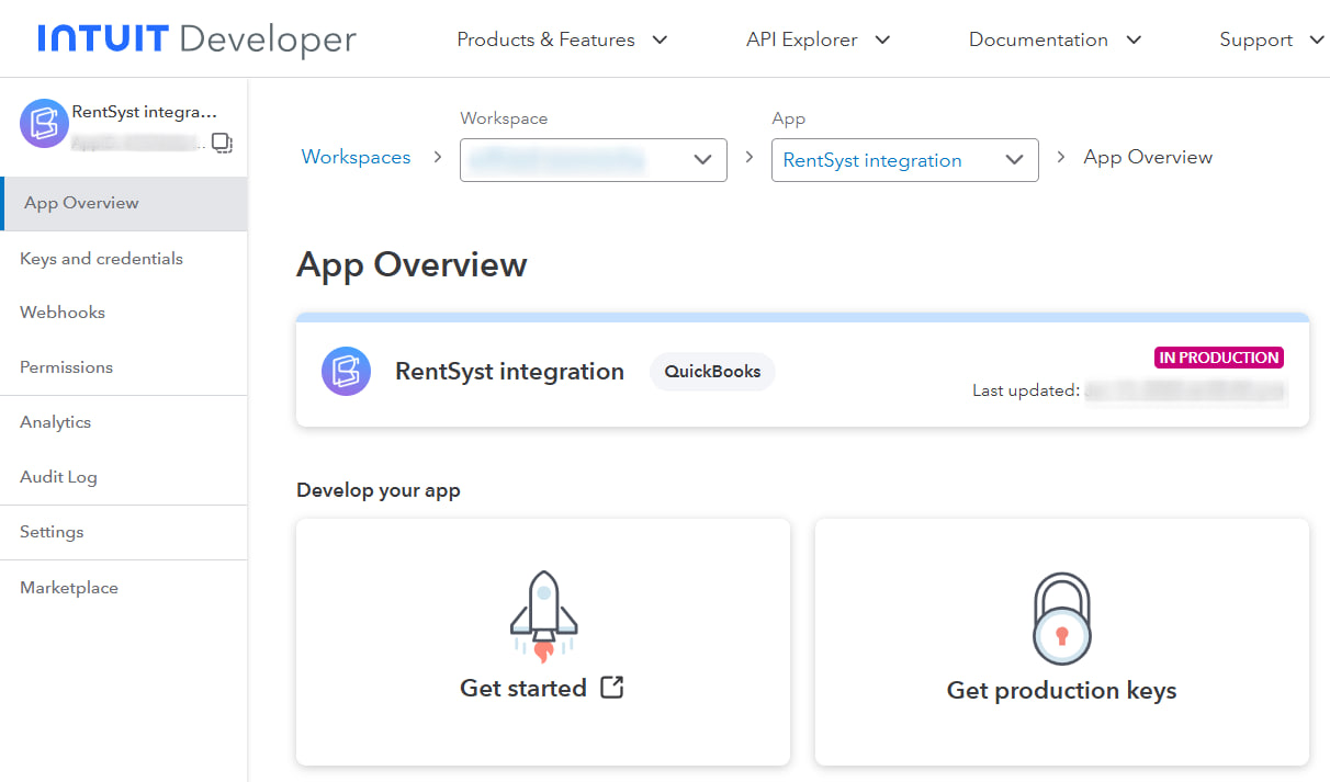 Go to your Quickbooks profile homepage that you connected to Intuit Developer.