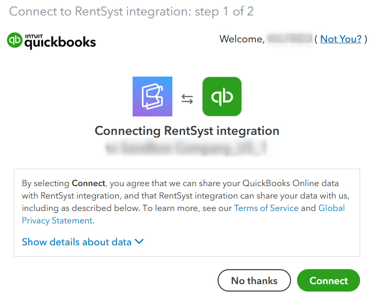 After this, RentSyst + QuickBooks are starting to connect together.