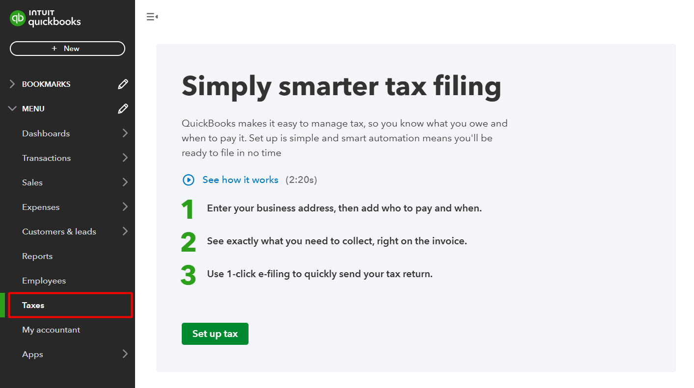 12.5. QuickBooks also recommend to check video guide below Tracking Sales Tax in QuickBooks