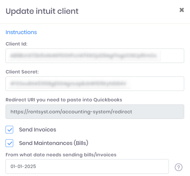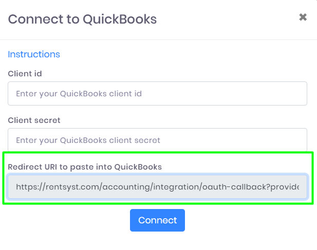 Redirect URL – https://rentsyst.com/accounting/integration/oauth-callback?providerCode=quickbooks_type