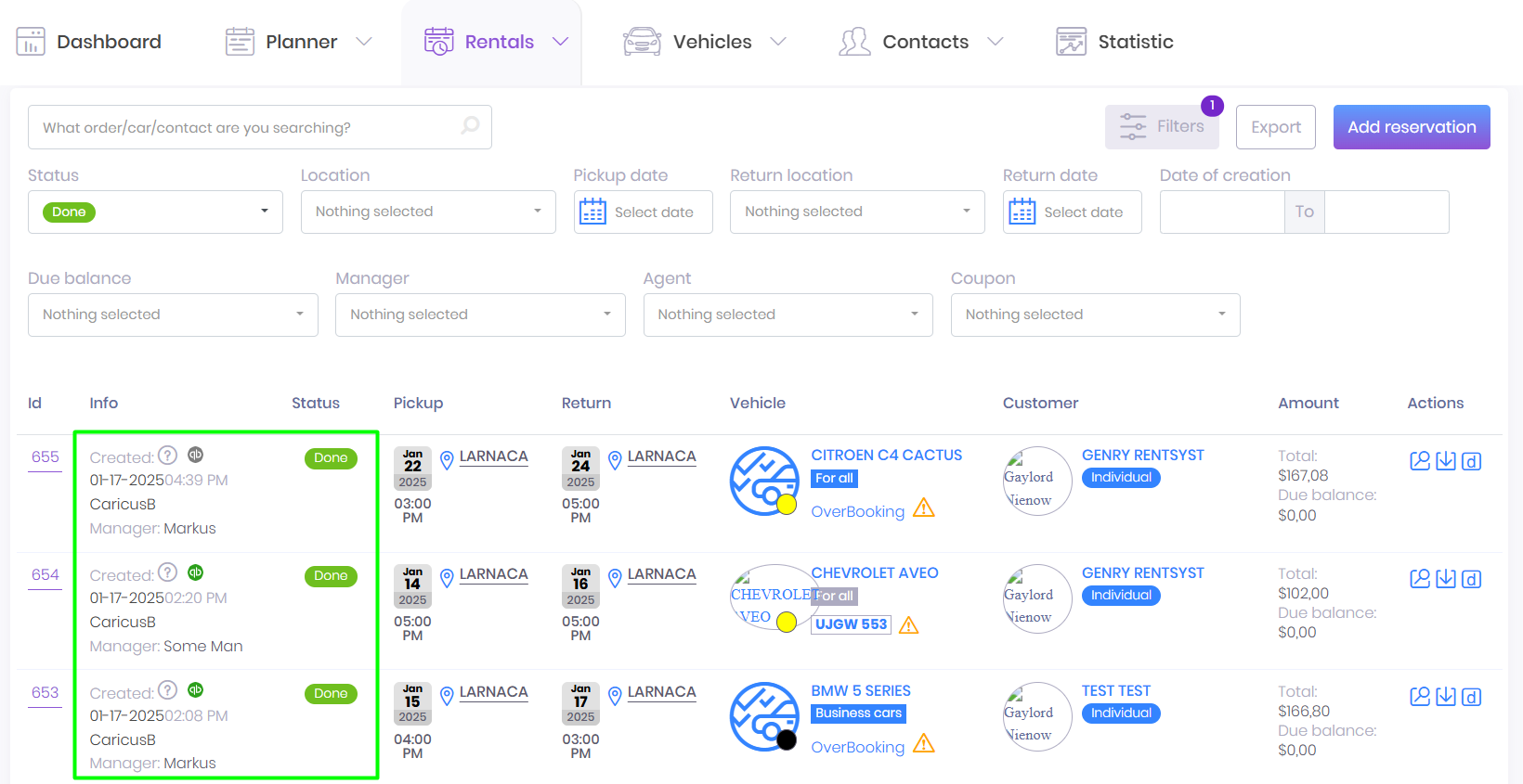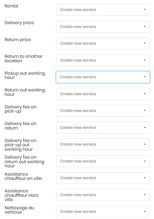 Left side options – you can see all the elements of the system that your company creates in RentSyst. They are individual for each user.