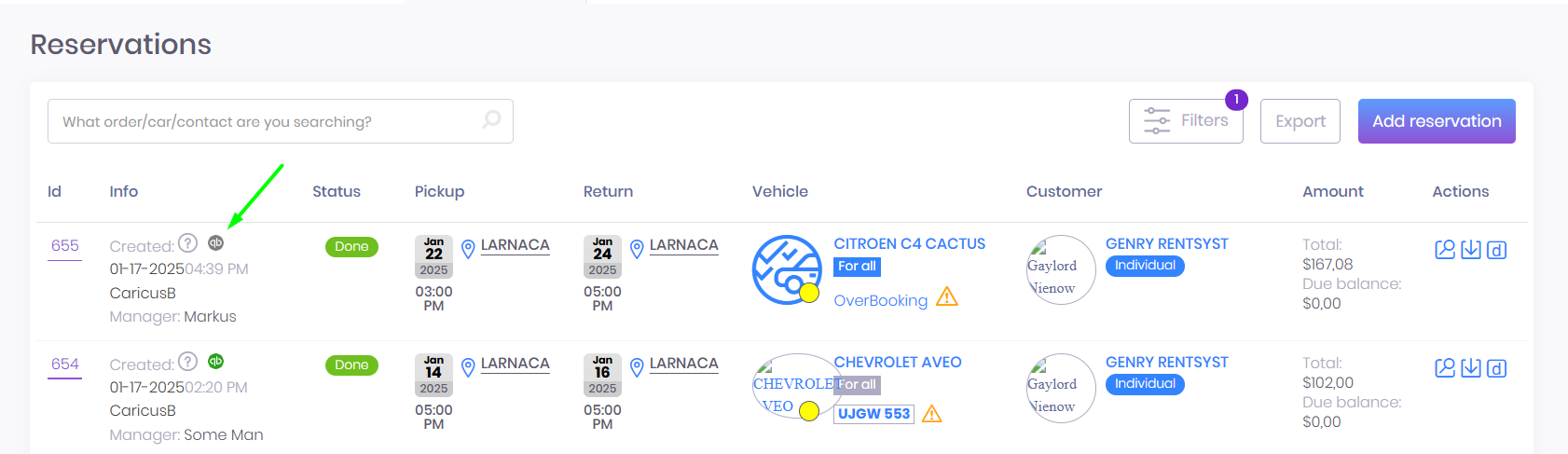 You will see QB icon nearby the reservation: