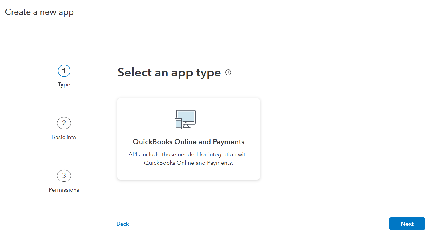 4.1. Next step are very fast and easy – just follow the system steps. Select an App type – choose QuickBooks Online & Payments.