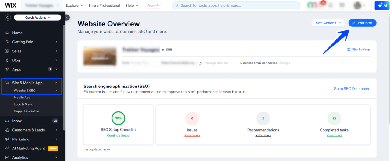 Go to your website’s Editor (choose your site → Edit Site)