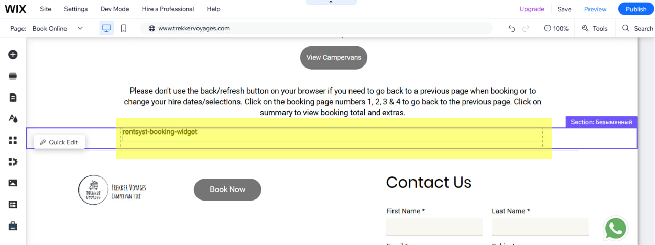 Click Preview to test the booking page integration