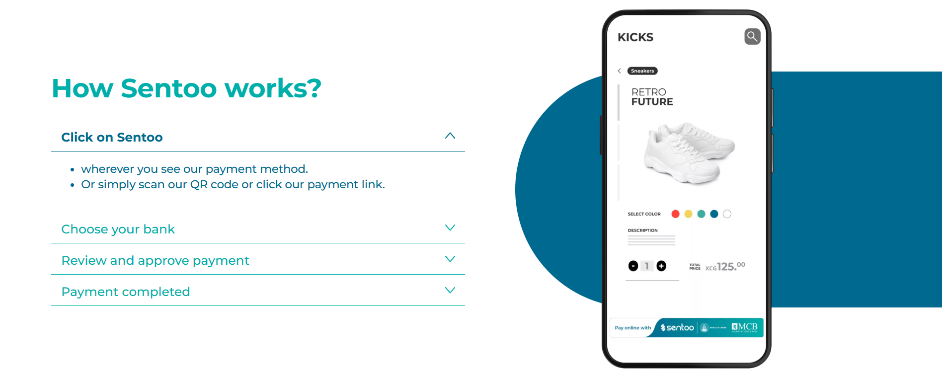 Payments are processed through Sentoo’s secure infrastructure, keeping sensitive card data protected.