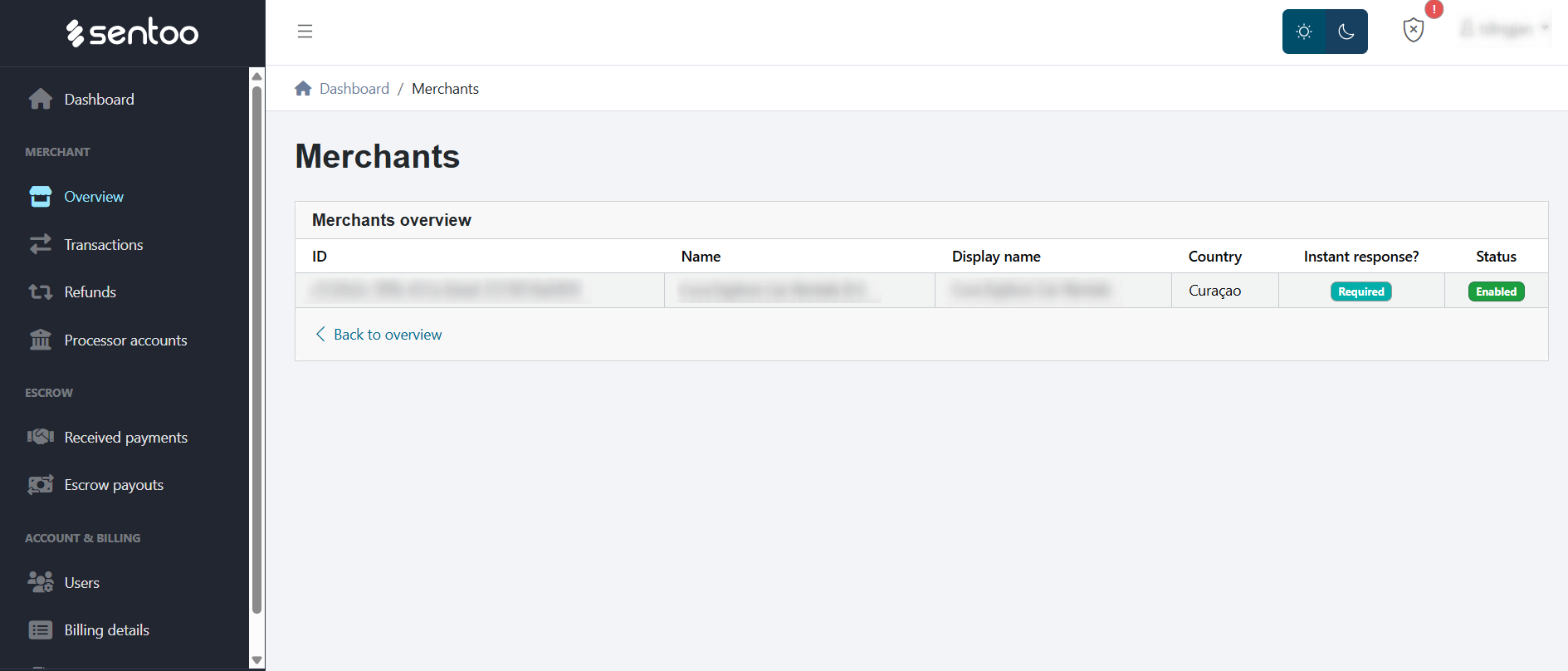 5. Go to the Overview tab – here you should have created your Merchant account.