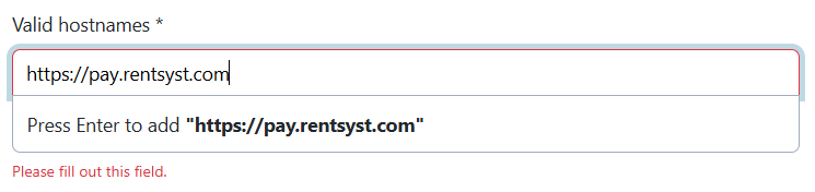 Once hostname https://pay.rentsyst.com is added – please press Enter to add the link: