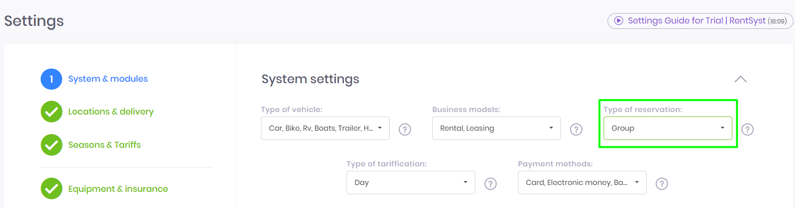 A group reservation has specific booking mechanics, which are predefined by rent-a-car companies that customers book a vehicle from a category, rather than a specific vehicle.