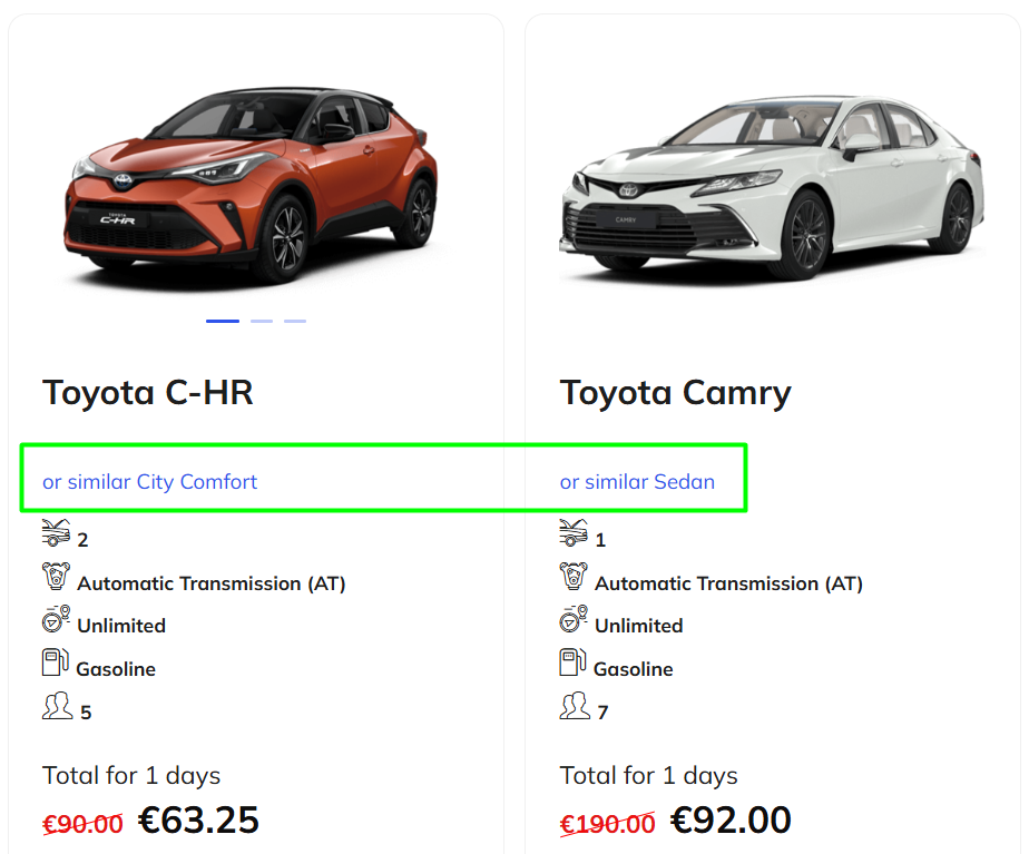 Within the group, in most cases, there can be different brands of vehicles, if the client sees a specific name of the car in the booking, he thinks that this particular car will be booked, which is not always correct.