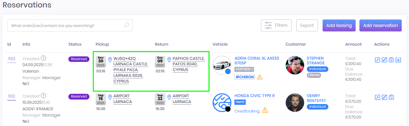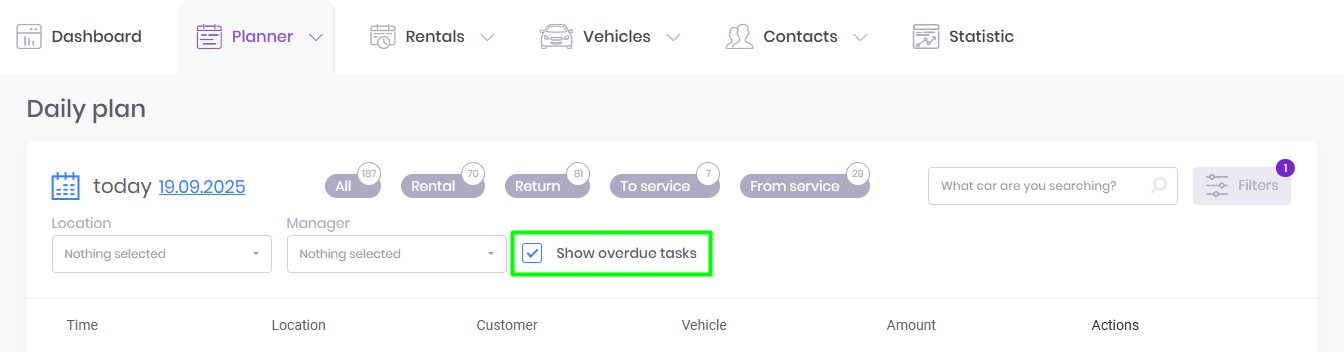 When the filter is active, you will see below all overdue task for all previous period, starting from the most recent reservations to the most oldest by time.