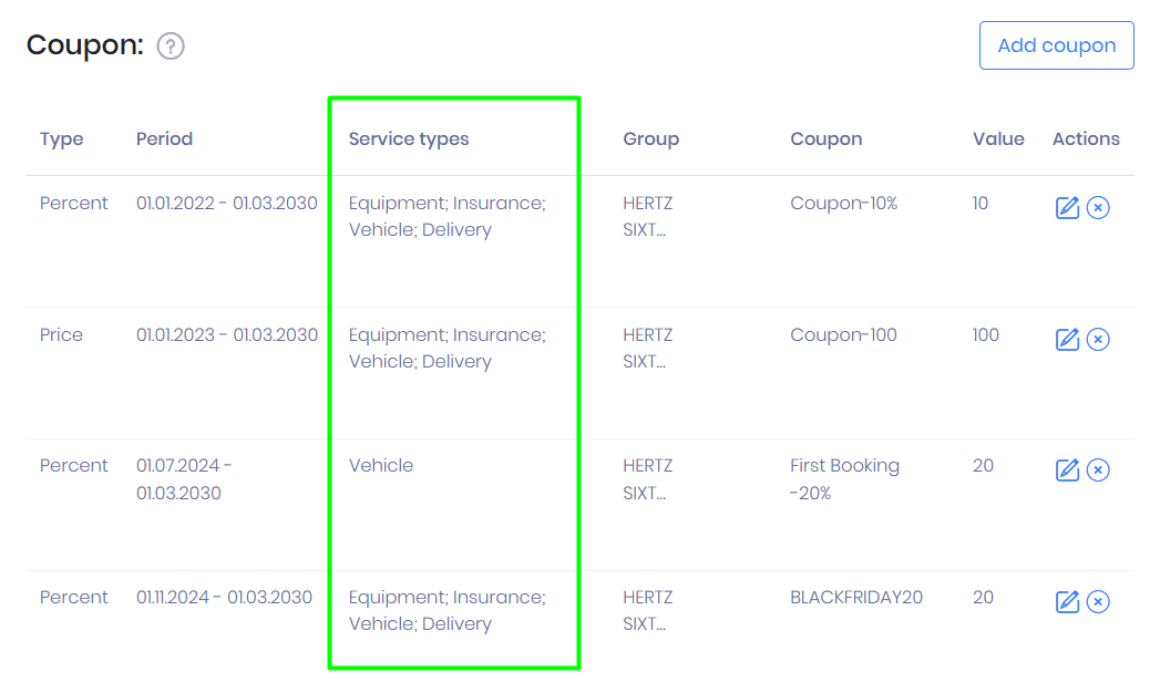 Before this update, a discount coupon was applied for all order summaries, however now you may apply it for instance only for a delivery cost or vehicle cost, saving full cost for insurance and additional extras options.