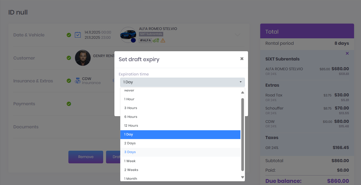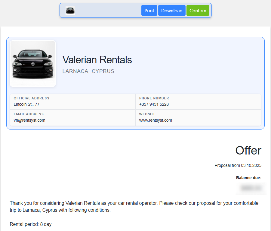 Once approved, the system automatically generates a rental order – making your workflow faster, smoother, and more professional.