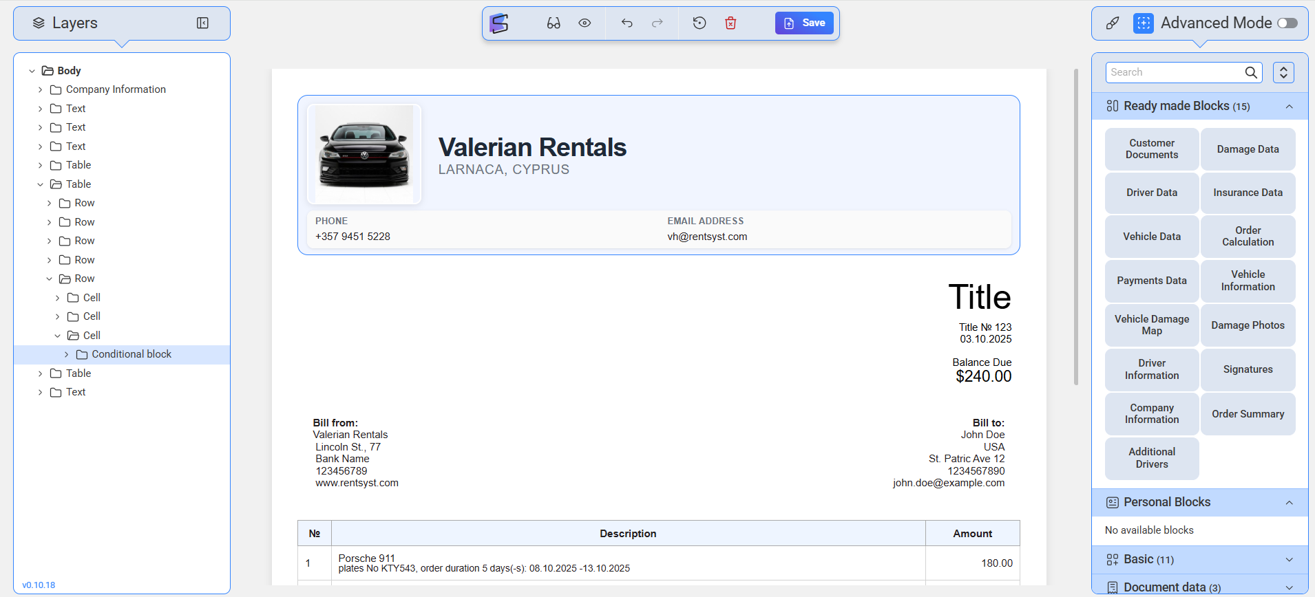 Discover Invoice 2.0 in RentSyst. A brand-new design, improved editor, and powerful customization options.