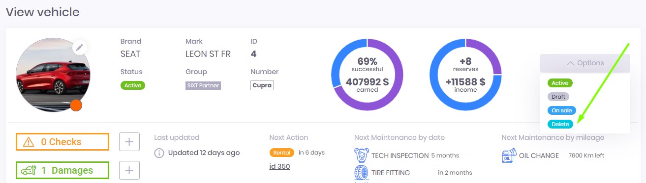 ⚠️ We recommend carefully using Delete status and mark it only in case you don’t own this vehicle or don’t plan to rental it anymore.