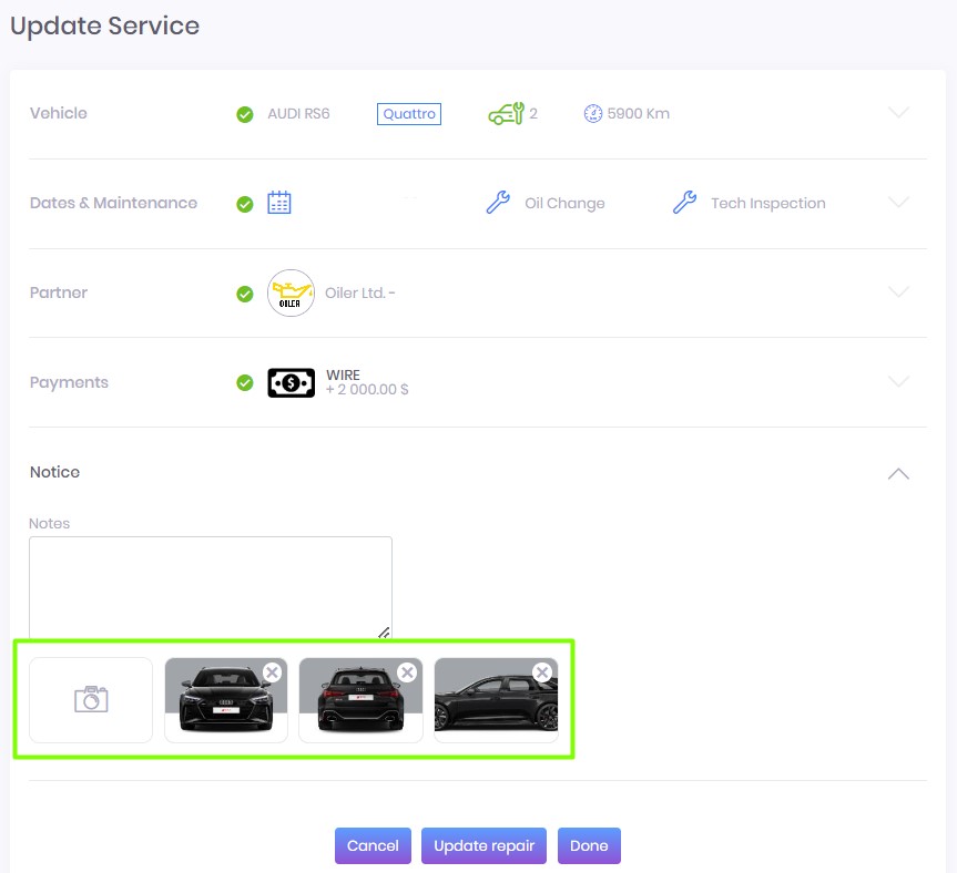 Now you can download photos for vehicle conditions after repair or receipt from your Service company and attach it to Maintenance / Service tasks.