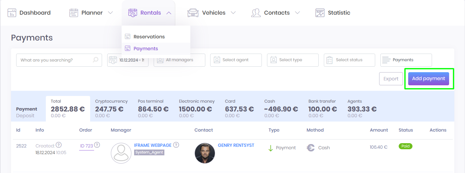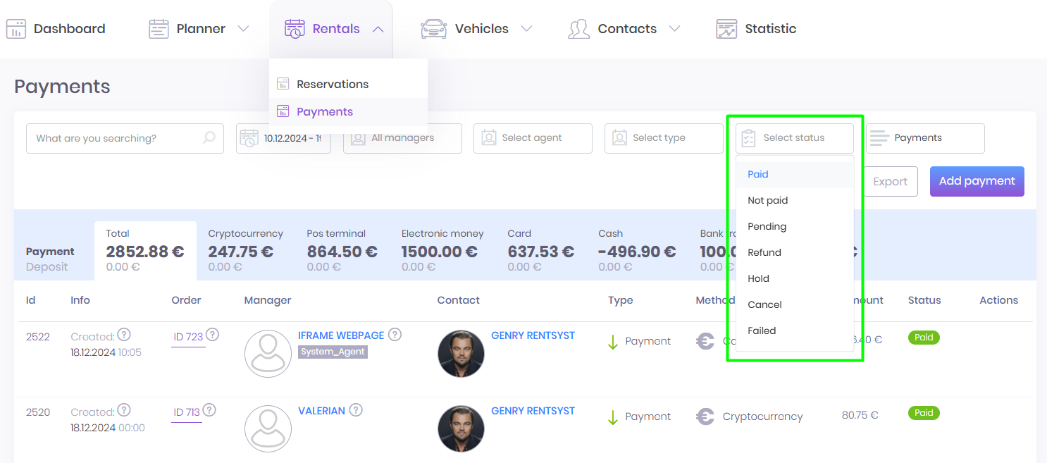 For your convenience our Devs team added a new filter for the Payments tab related to payment statuses.
