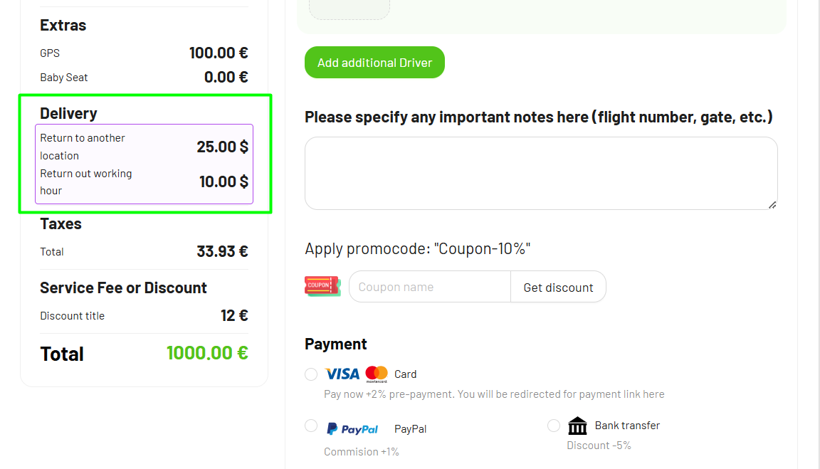 Now you may customize and translate absolutely all phrases, connected with delivery types name. You may find this feature inside booking editor on Step 4 – check order Summary menu and find Delivery window: