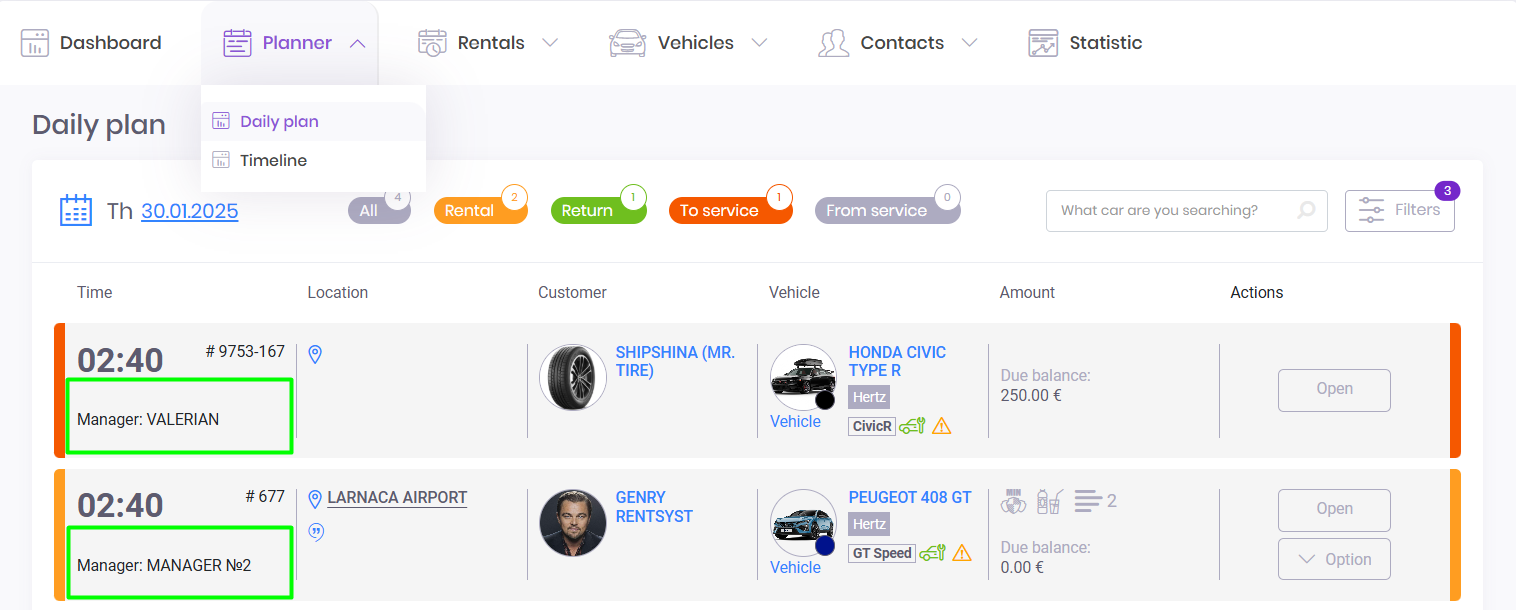 You can also check or adit assigned manager per reservation inside your Daily Plan: