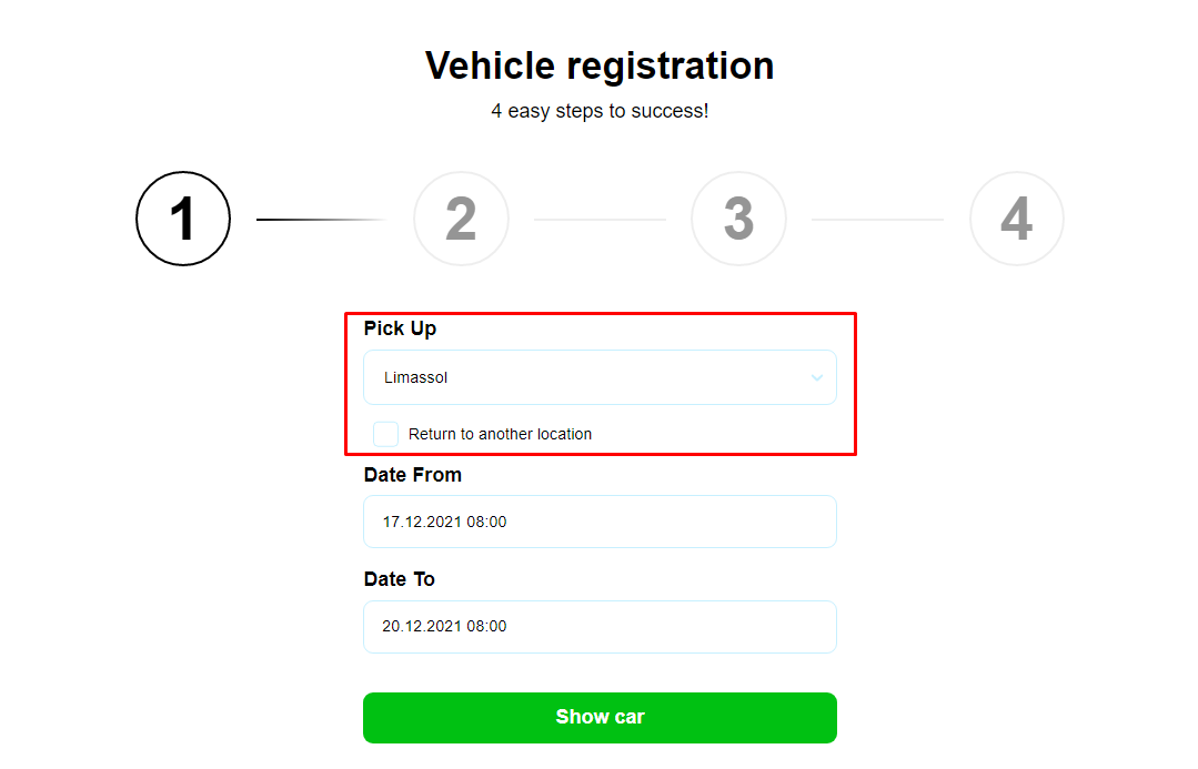 Many of our clients asked that at the first step when booking a car, one location was available for the Car Pickup and Return. We did it.